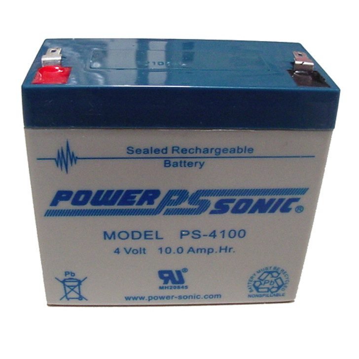 The Power-Sonic PS-4100 sealed lead acid battery is a 4V 10Ah battery. This 4V 10Ah Power-Sonic battery is an AGM, Maintenance-Free, Valve Regulated (VRLA), rechargeable battery. Power-Sonic batteries are a rugged and economical battery. Able to be used with a wide variety of applications; it has a wide operating temperature, long service life and deep discharge recovery.