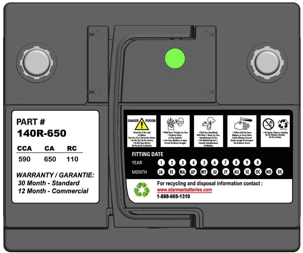 | Battery Type | Flooded Lead-Acid Starting Battery |
