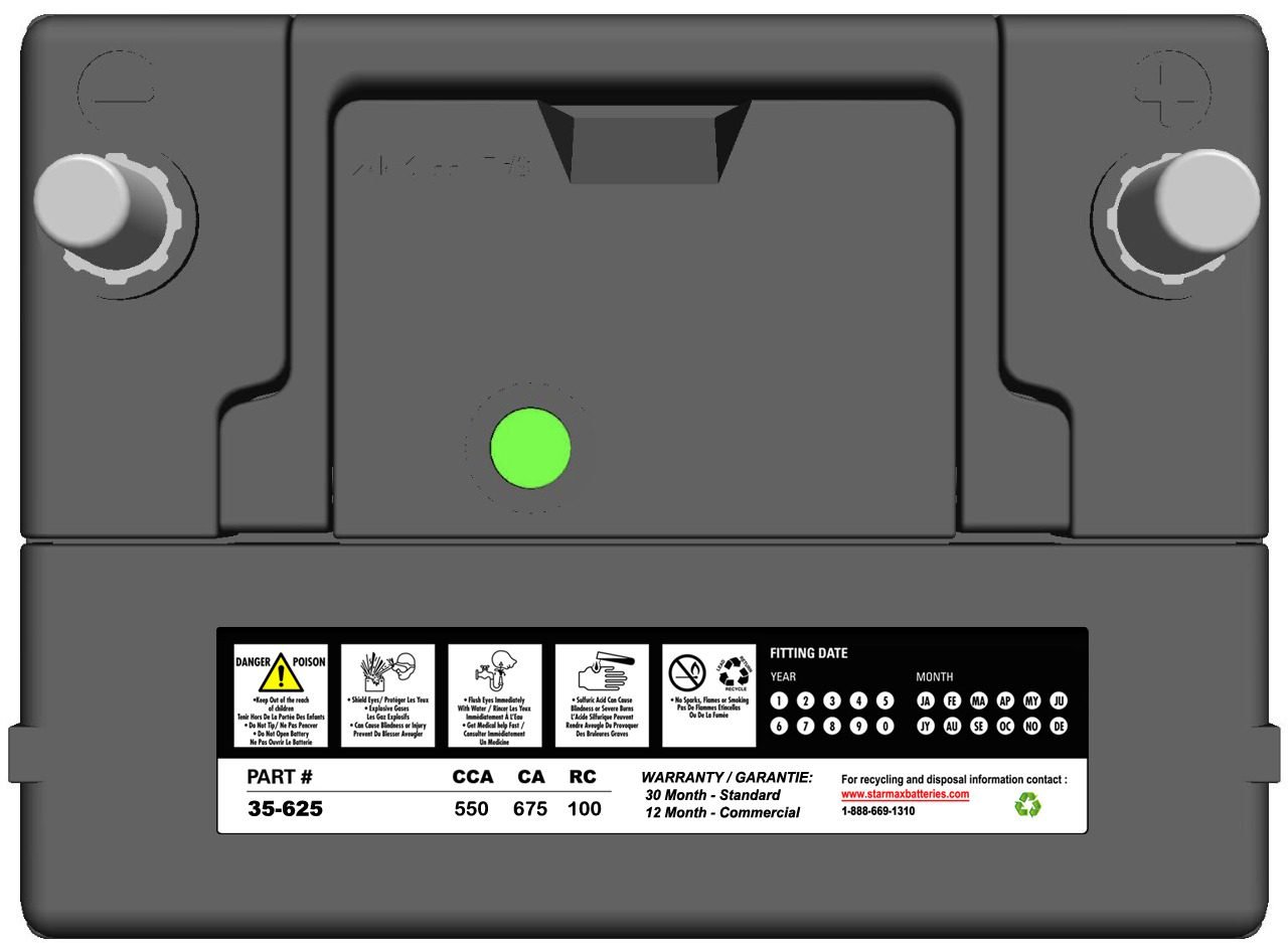 | Battery Type | Flooded Lead-Acid Starting Battery |