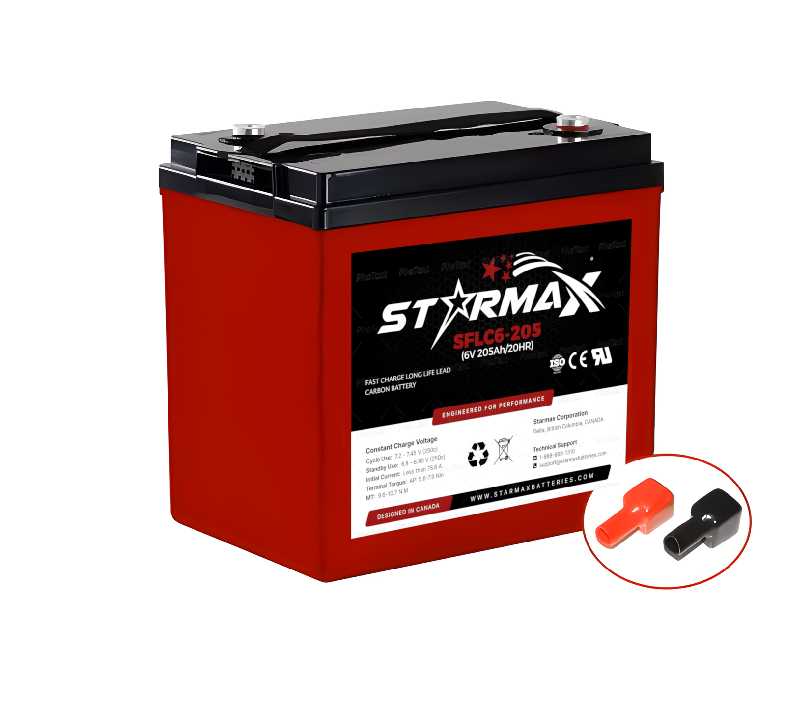 The Starmax SFLC Fast-Charge Long-Life Lead Carbon Battery is a high-performance deep cycle lead carbon battery ideal for solar power systems, off-grid energy storage, wind power applications, sweepers, golf carts, and light industrial electric vehicles. Built for extreme temperatures (-20°C to 60°C), it features low self-discharge, over 3,000 cycles at 50% DOD, and a float service life of ≥20 years. ISO 9001/14001/18001 and CE/IEC certified, this lead carbon battery delivers reliable, long-lasting power for industrial and renewable energy applications.