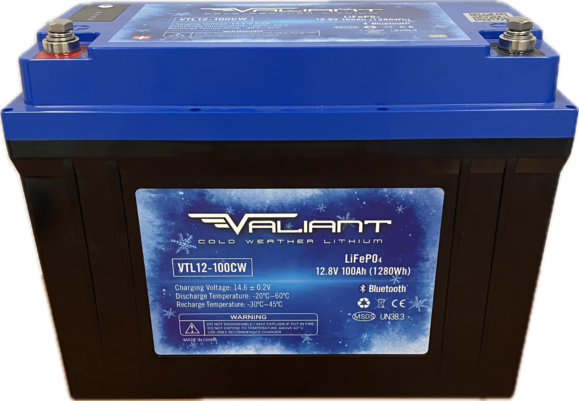 Introducing the Valiant VTL12-100CW VTL Lithium Iron Phosphate battery. Our game changing “Cold Weather” lithium battery that can be discharged down to -20 Celsius and recharged to -30 Celsius thanks to its internal heating film. All Valiant lithium batteries have an upgraded BMS for maximum discharge and recharge capability. *new look coming soon!